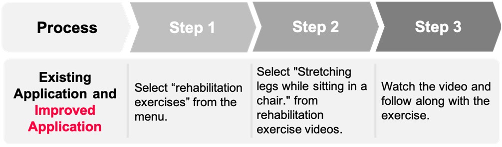 The experiment took place at the Living Lab of the Senior Industry Innovation Center in Seongnam, South Korea in December 2022. To evaluate the usability of the improved application (IA), a usability assessment was conducted with participants aged 60 and above.
